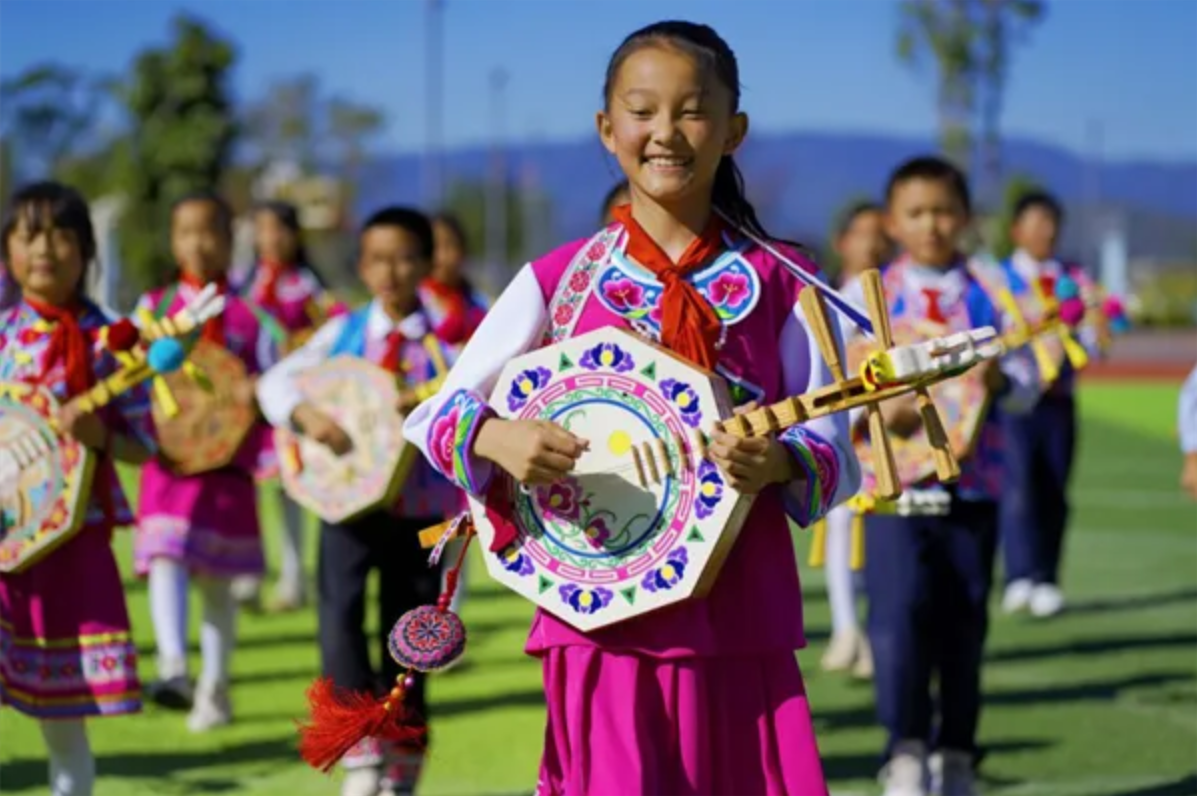 一旦文化自信的种子悄然种下,那么文化传承的种芽就会随之生长。楚雄彝族自治州牟定县实验小学的学生手持彝族特色乐器龙头四弦琴,悠然跳起了左脚舞,大理白族自治州云龙县宝丰小学的学生也沉浸在白族舞蹈“力格高”的欢乐之中,红河哈尼族彝族自治州元阳县南沙小学在“大乐作”的音乐声中尽情蹦跳,稚嫩的笑脸如花般在美妙的民族音乐声中朵朵绽放。